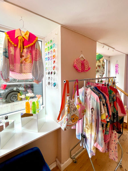 Currently, you can discover fun & cool upcycling fashion from Genfødt, charming and fun ceramics from Falkeblik and colorful fashion from HUNKØN - each bringing extra life to the store with their unique, colorful, and playful designs.
