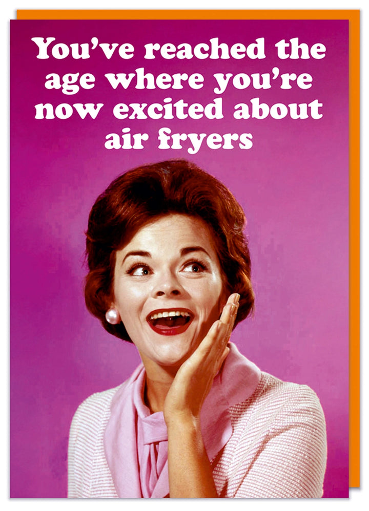 There comes a time in our life (I'm already there!) when youthful pursuits like clubbing get taken over by the best laundry powder, cosy nights in and of course the wonders of air fryers. We now have a card for that friend who've reached this milestone.