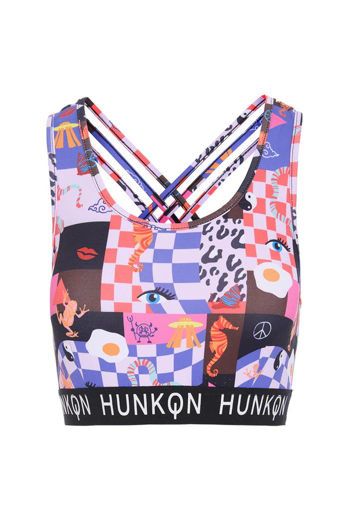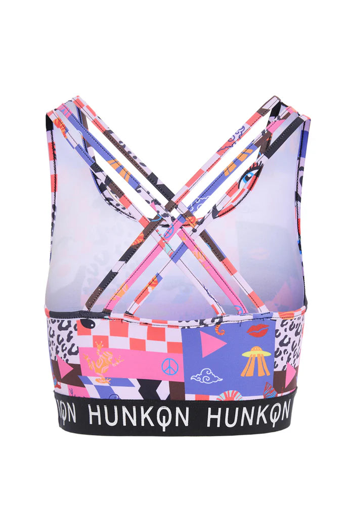 Toppen har en bred logo-elastik under brystet for støtte og dobbelte krydsede stropper på ryggen.