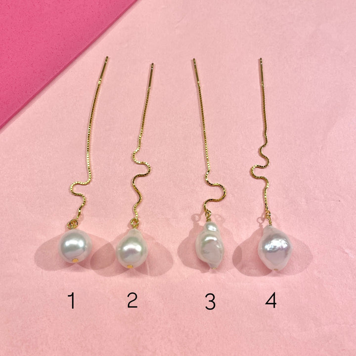 Delicate, golden and full of charm. Cool Earchain with genuine freshwater pearls called baroque pearls.