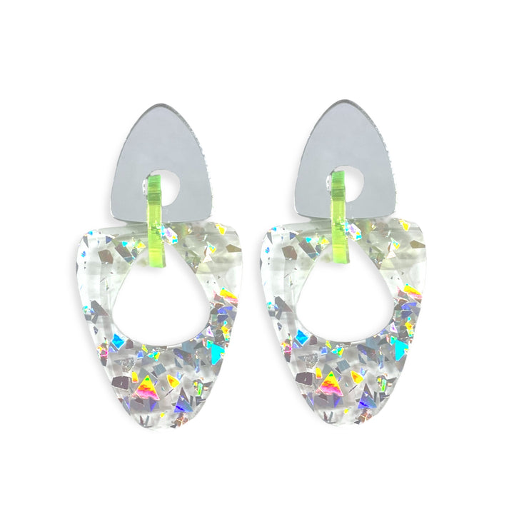 80s Glam - Silver/Neon Yellow/ Holo Flakes