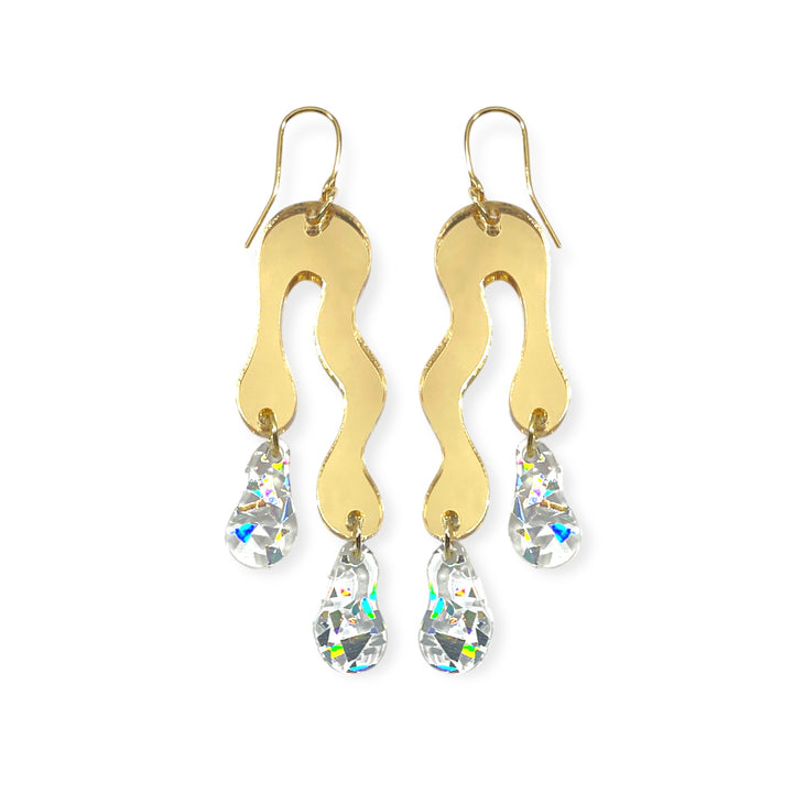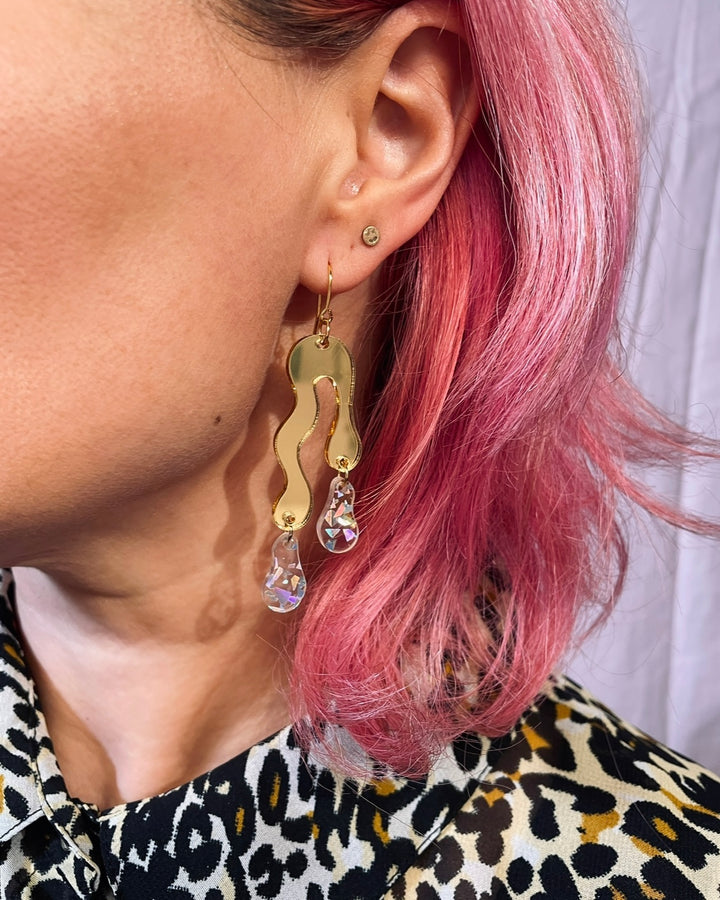 Beautiful double melted drops, with two Holo Flakes / holographic tint drops and earhook