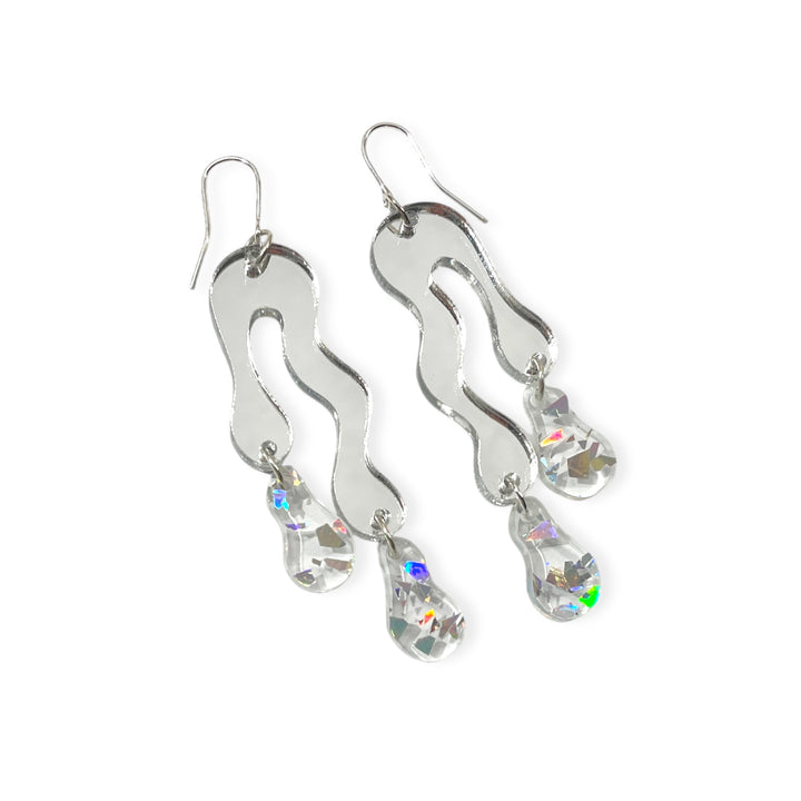 Beautiful double melted drops, with two Holo Flakes / holographic tint drops and earhook