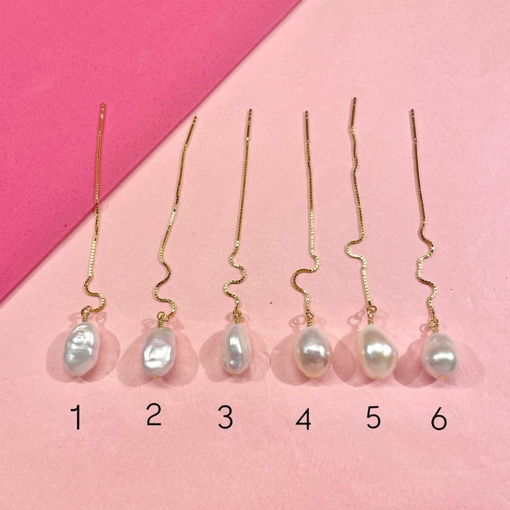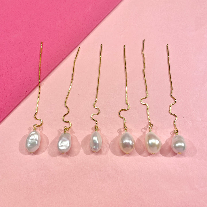 Delicate,golden and full of charm. Cool Earchain with keshi pearls and earstuds.
