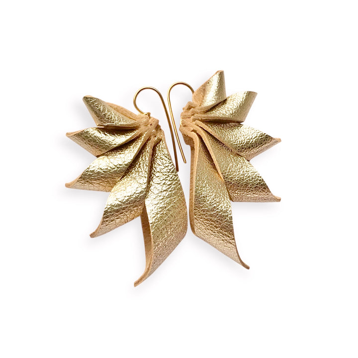 Pair of weightless earrings handmade from genuine leather. Designed and produced by the Nordic design brand, ByFossdal in Copenhagen.
