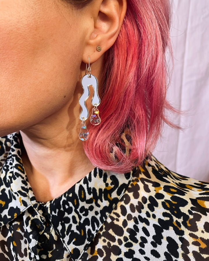 Beautiful double melted drops, with two Holo Flakes / holographic tint drops and earhook